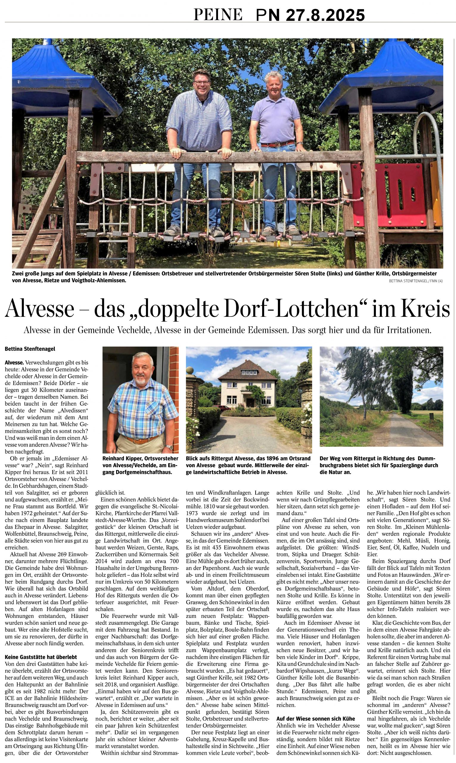 Korrektur und Ergänzung zum Bericht der PN vom 27.08.2025 Alvesse- das doppelte Dorflottchen