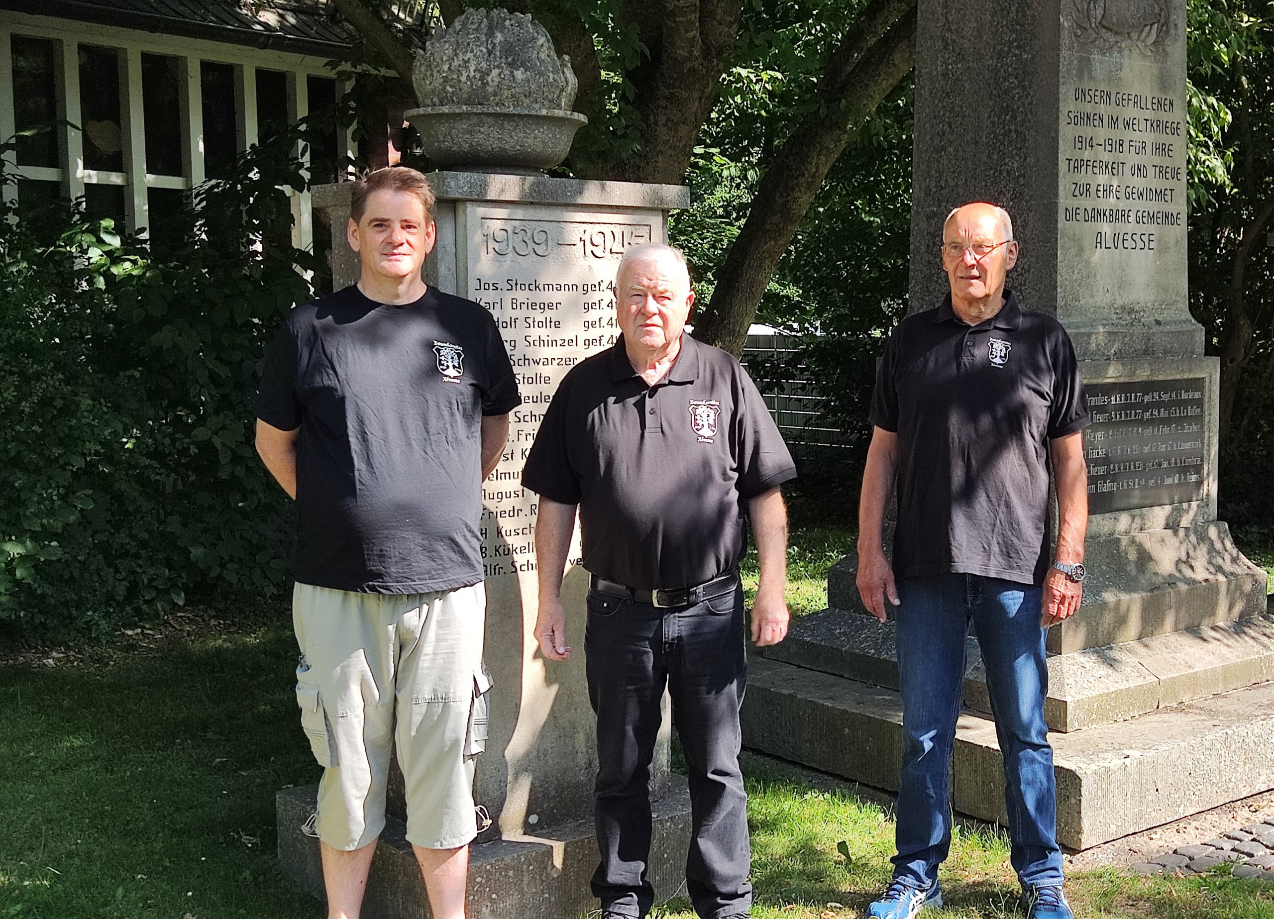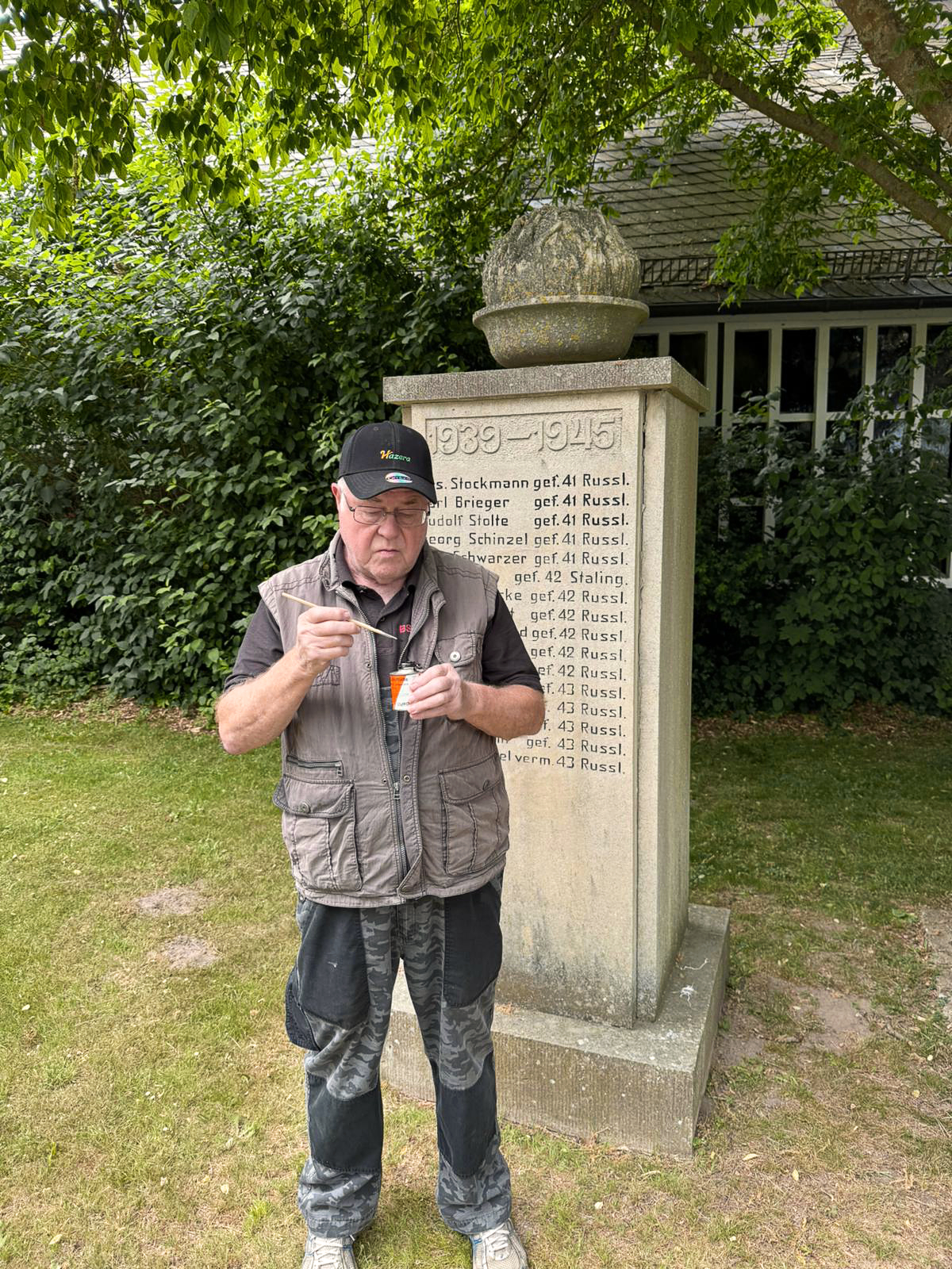 Pünktlich zum Alvesser Schützenfest konnten die Arbeiten erfolgreich abgeschlossen werden. Bei der Kranzniederlegung am Ehrenmal erstrahlten die Inschriften in neuer Deutlichkeit – ein würdiges Zeichen lebendiger Erinnerungskultur und des Zusammenhalts in der Dorfgemeinschaft.